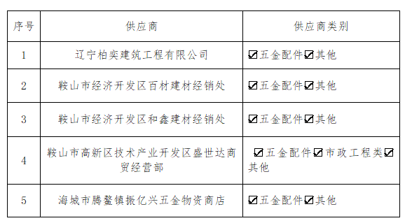 根據(jù)2024年5月11日發(fā)布的《供應商入庫公告》要求,經(jīng)過報名篩選和資質(zhì)審查等程序,確定了5家供應商符合入庫條件?,F(xiàn)公布經(jīng)過篩選的供應商入庫清單,名單如下: